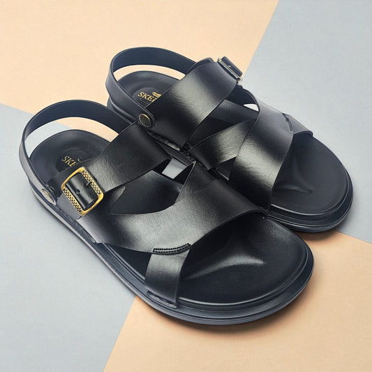 SKEROO 6408 Men's BLACK Chappal/Flip flop/Slipper Extra Soft Chappal Slipper Ethnic Wear Leather With Adjustable Buckle Strap Navratri Fashion Footwear.