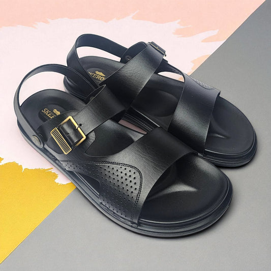 SKEROO 5003 BLACK Men's Leather Button Pack Sandal