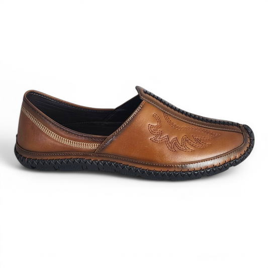 P&G N1401 Men's TAN Slipon Sandal Extra Soft Sandal/Mojri/Ethnic Wear Leather With Adjustable Strap/Navratri Fashion Footwear.