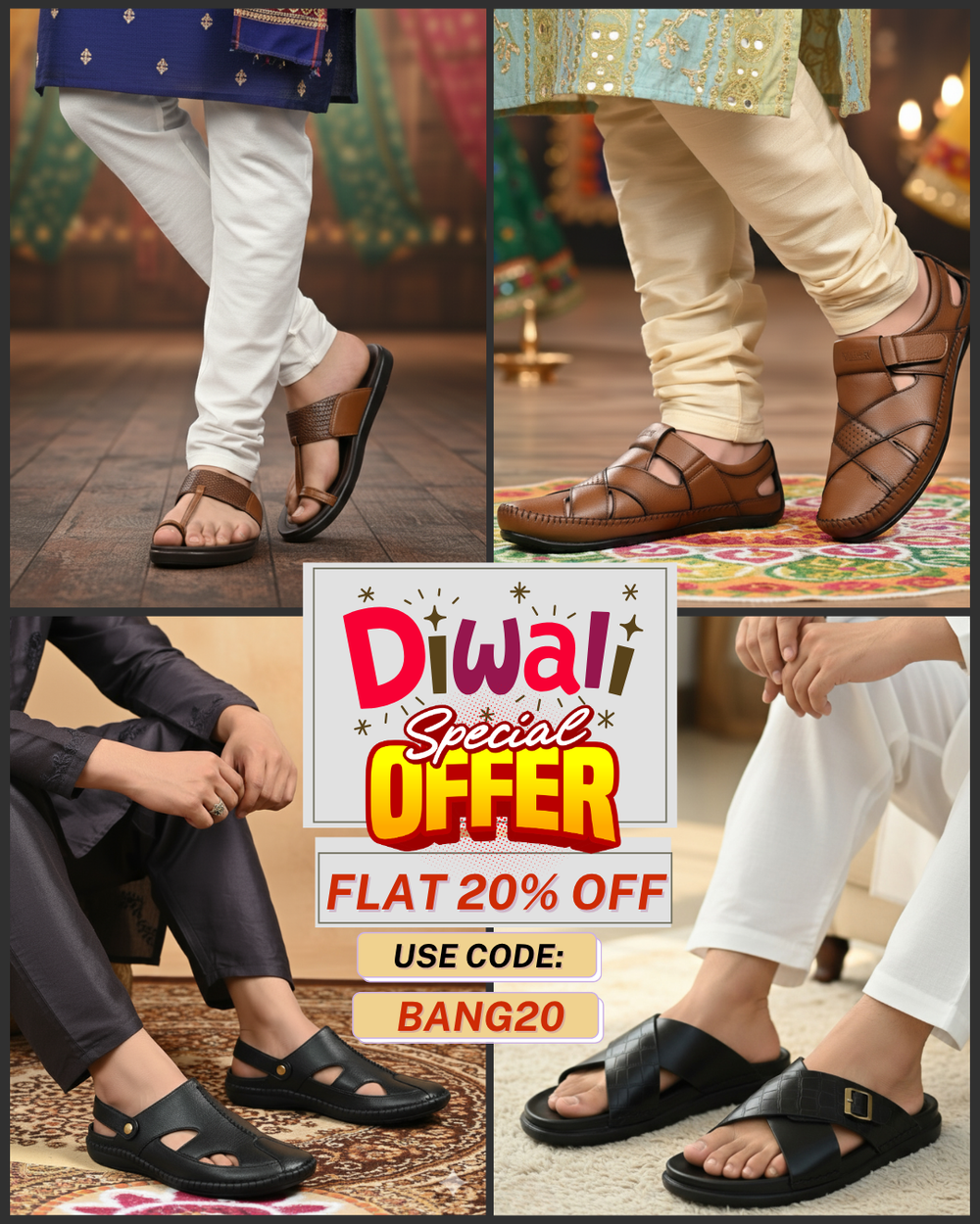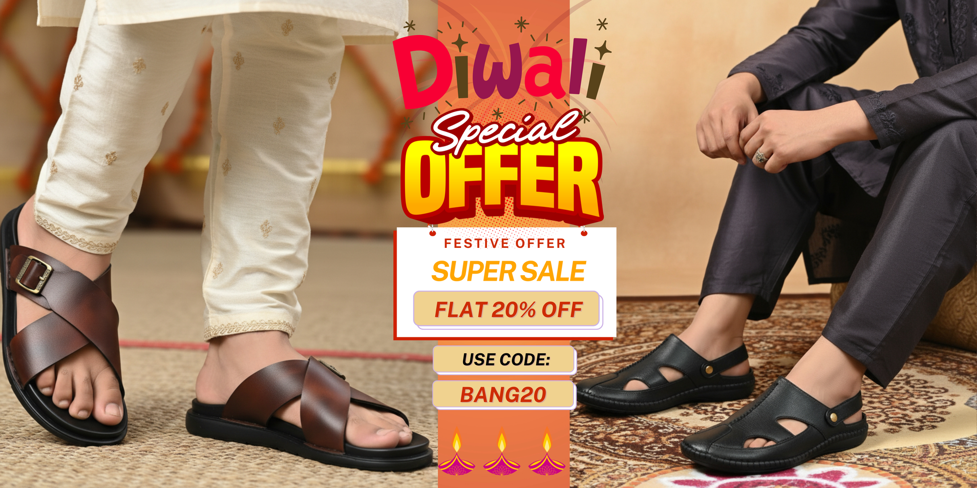 P&G N1401 Men's TAN Slipon Sandal Extra Soft Sandal/Mojri/Ethnic Wear Leather With Adjustable Strap/Navratri Fashion Footwear.