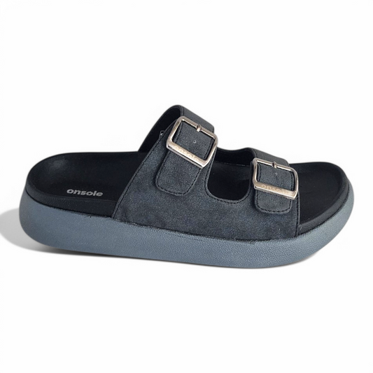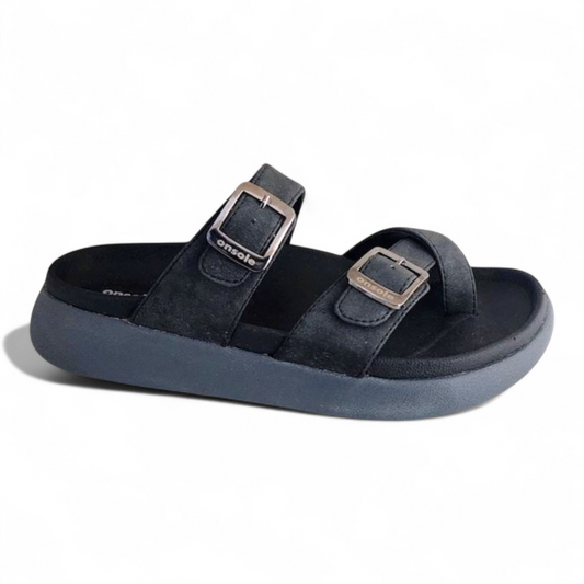 ONSOLE LEO BLACK Men's Slides/Chapple Double-Strap Sandals with Buckle Closure