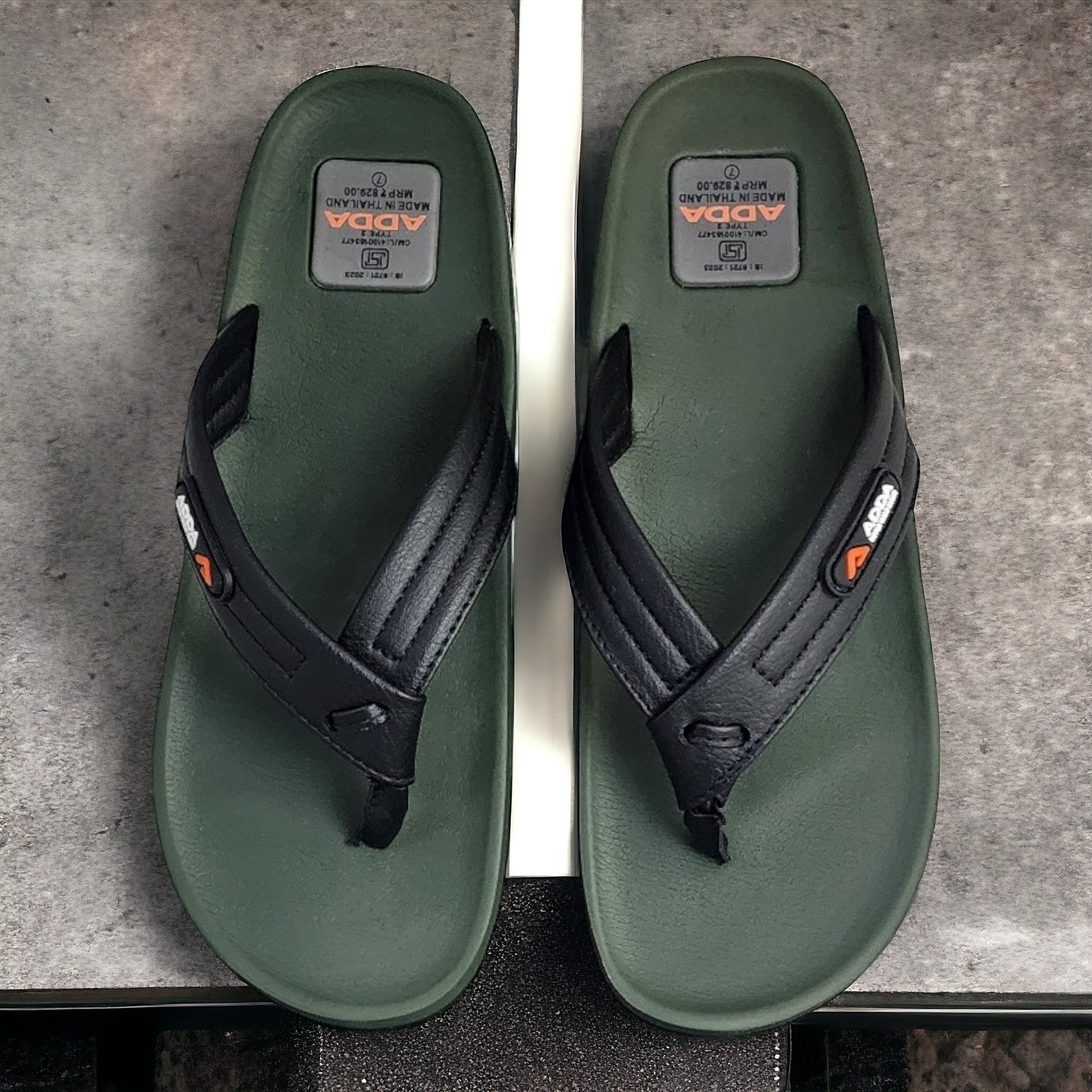 Elevate your casual style with ADDA OLIVE/BLACK Men's Slipper/Flip flop. These slip-ons are perfect for men looking for a combination of minimalism and elegance, boasting a sophisticated Rexine upper and a lightweight rubber outsole. Furthermore, the anti-skid sole design guarantees exceptional grip while the cushioned EVA insole ensures ultimate comfort for all activities. The versatile olive color makes these slippers an ideal choice for any event.