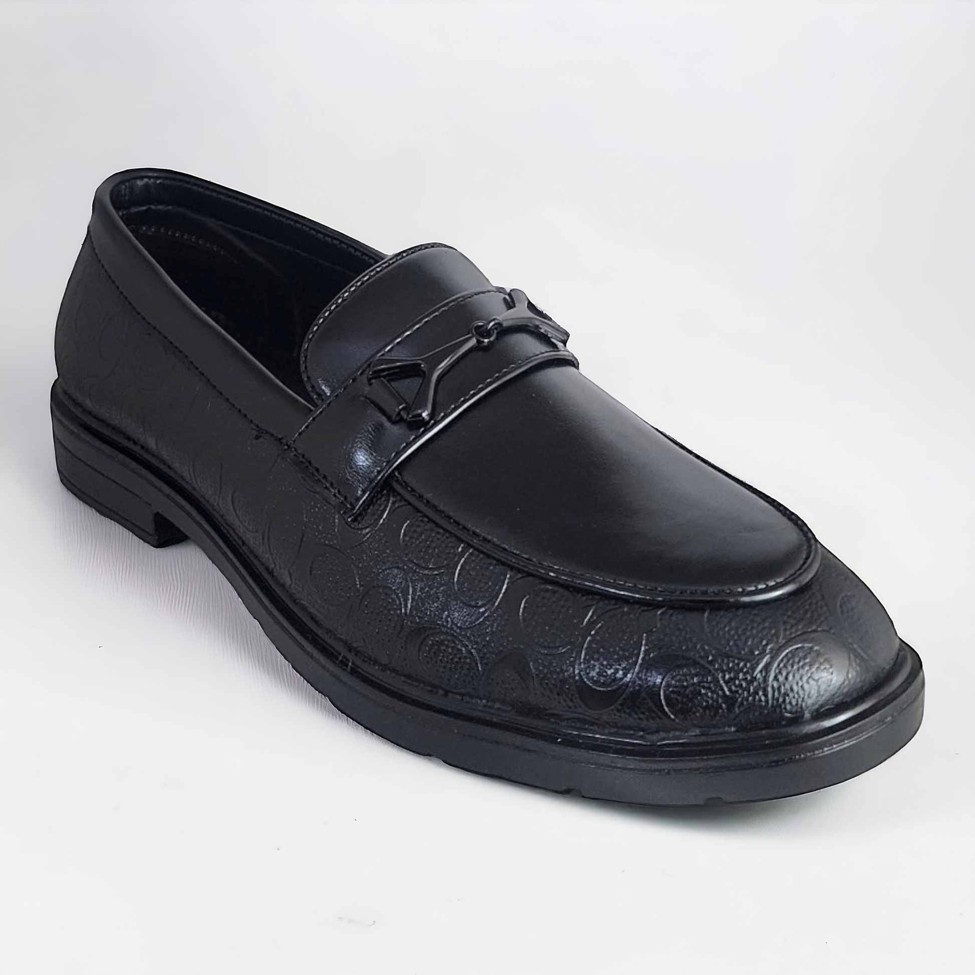 Enhance your shoe collection with the sophistication of the P&G 0304 BLACK Men's Loafers Shoes. With a polished texture and deep black color, these shoes make for a stylish option for both formal and semi-formal occasions. The buckle detail on the front adds a unique touch to the timeless loafer design, while the slip-on construction ensures all-day comfort. A versatile and essential addition to any wardrobe, these loafers are suitable for a range of settings, from work to leisure activities.